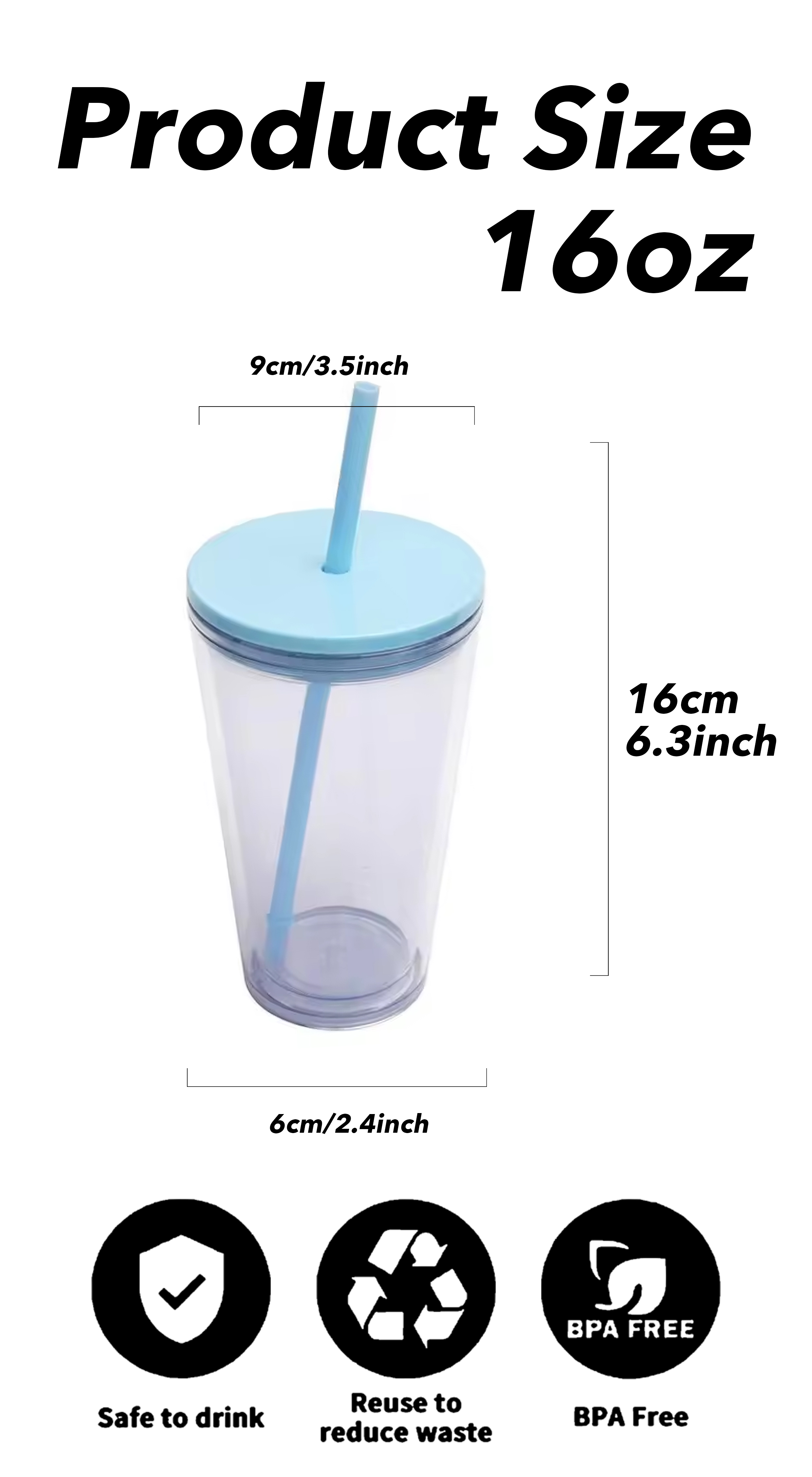 Accessories: Plastic straw + color lid