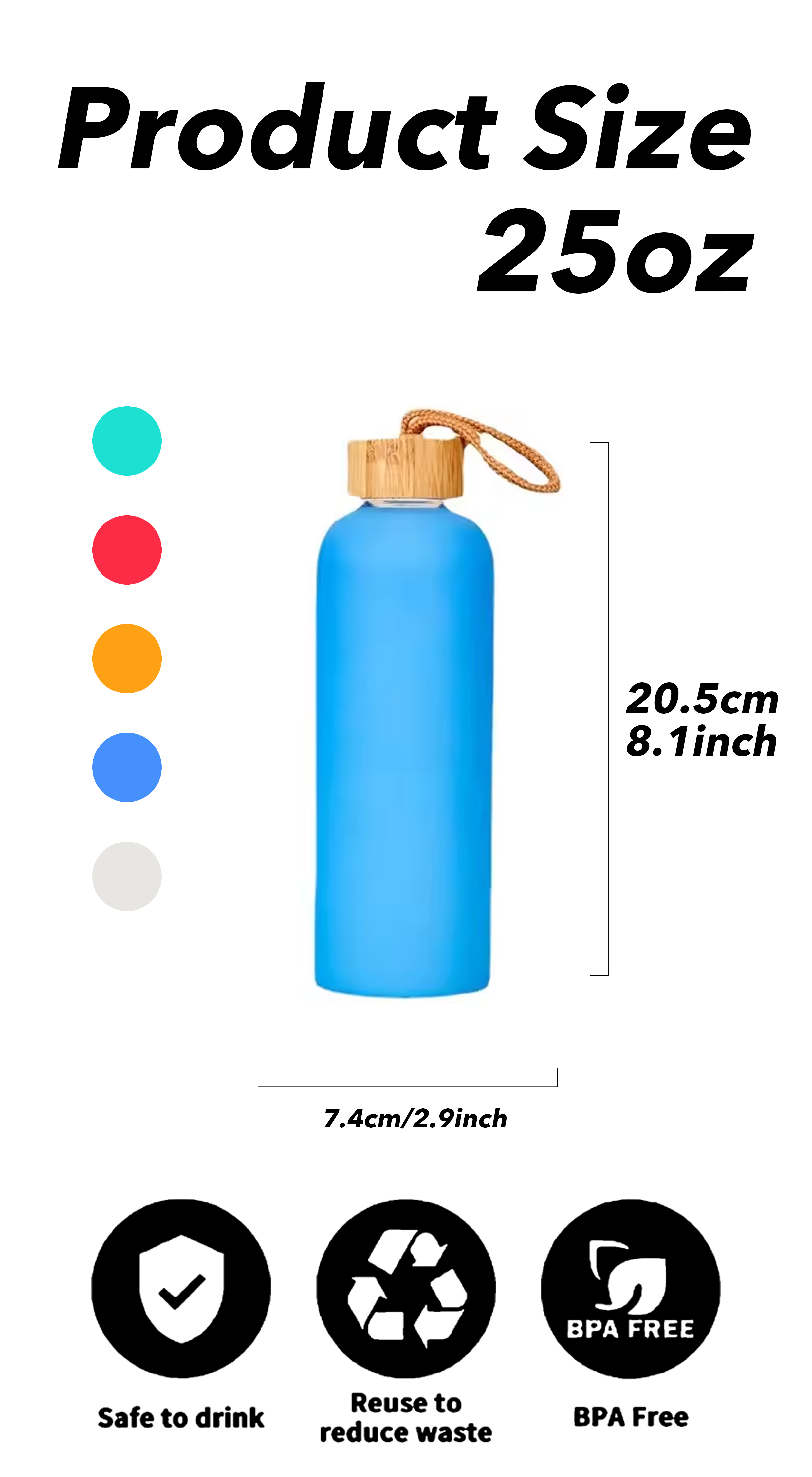 Style: 25oz water bottle with bamboo lid