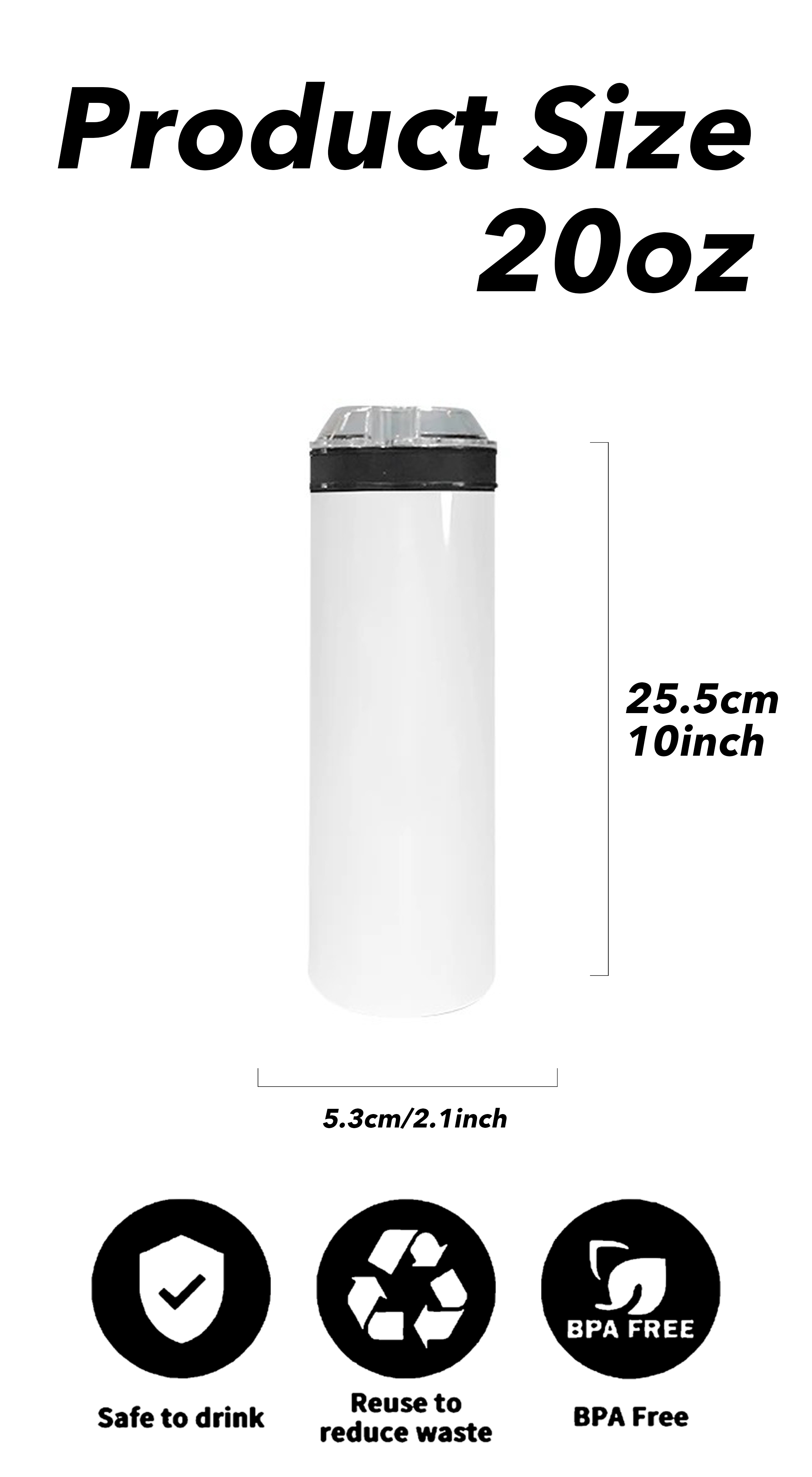 Accessories: Plastic straw + Plastic lid